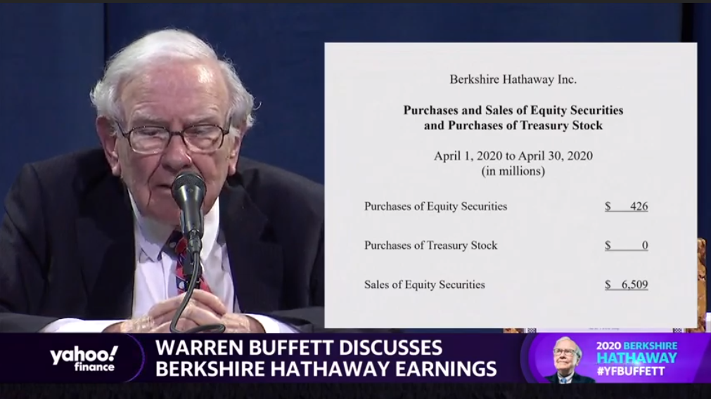 巴菲特在股东大会上表示,4月伯克希尔回购了4.26亿美元股票,但是同期卖出股票65.09亿美元,因此净回笼61亿美元。